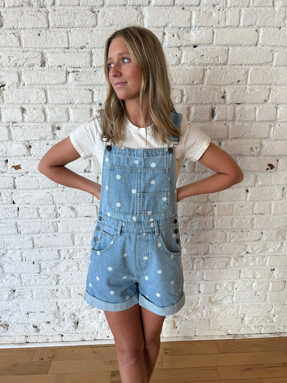 Daisy Polka Dot Overalls- Light Denim